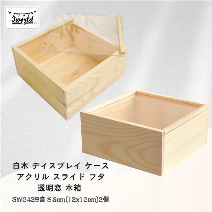 3world 白木 ディスプレイ ケース アクリル スライド フタ 透明窓 木箱 木目がきれいな白木でできたディスプレイボックスです。