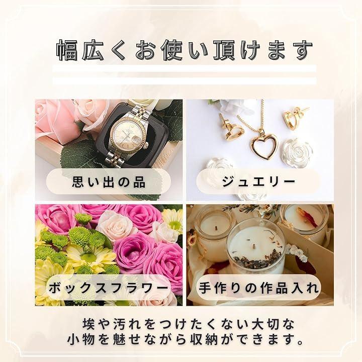 フィギュアはもちろん、ジュエリーや大切な思い出の品を入れたり、ボックスフラワー用、手作り作品のケース素材としてもご使用いただけます。