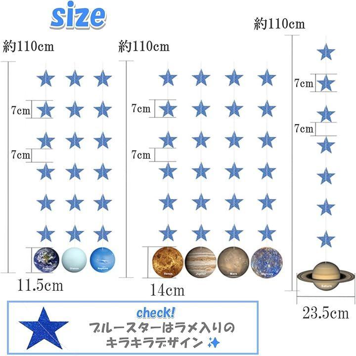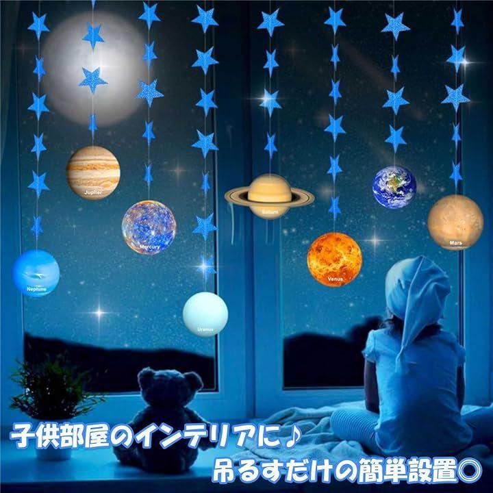 8つの惑星&キラキラと輝くブルーの星がお部屋を幻想的な雰囲気に演出してくれます。