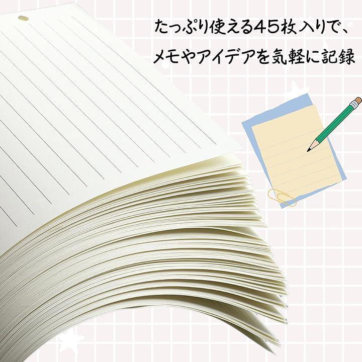 「効率的な計画」この手帳リフィルは、45枚の横罫用紙で構成されており、日々のスケジュール管理をスムーズにします。