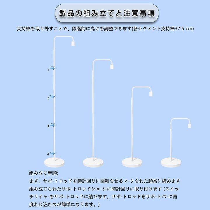 「簡単取り付け使用」配線不要で、サポートロッドを上から下にねじ込み、鉄製のディスクベースに締め付けるだけです。