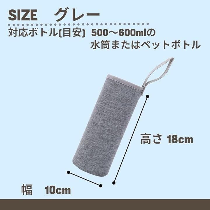 「商品内容」本体サイズ:高さ18cm、幅10cm 対応ボトル(目安):500ml~600mlのペットボトルまたは水筒 素材:合成ゴム(ネオプレン) *サイズ詳細は商品画像をご確認ください。