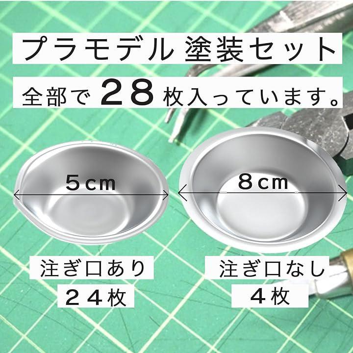 プラモデル塗装皿セット(28枚・小皿24枚、大皿4枚):小皿・直径5cm、注ぎ口有、ステンレス、大皿:直径8cm、ステンレス*モニターの環境により、色の見え方に若干差が生じる場合がございます。