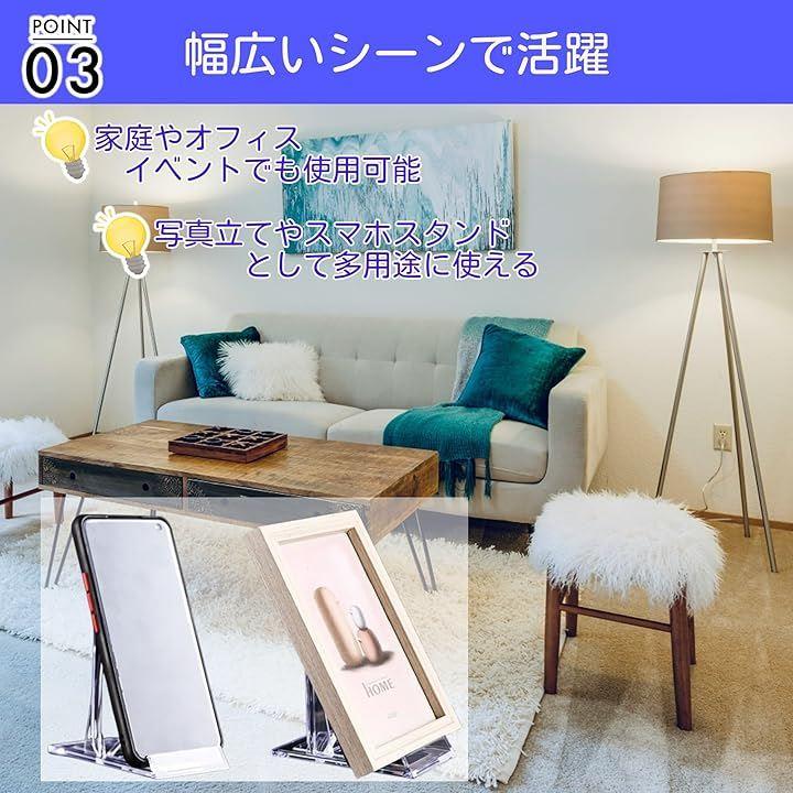 「幅広い用途で活躍」このスタンドは、写真やアート作品、カード、名刺など、さまざまなアイテムを美しく展示するのに最適です。