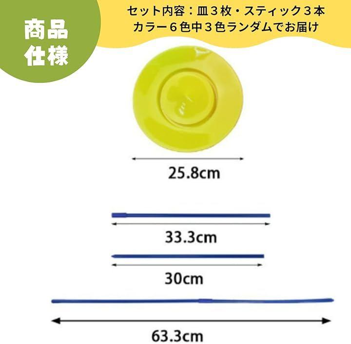「すぐに始められるオールインワンセット」皿3枚とスティック3本が揃っているので、届いてすぐに練習を開始できます。