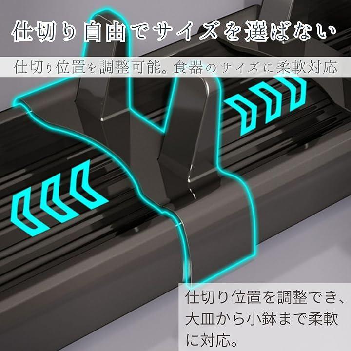 食器のサイズに柔軟対応」仕切りはスライド式で、食器の大きさや厚みに合わせて自由に調整可能。