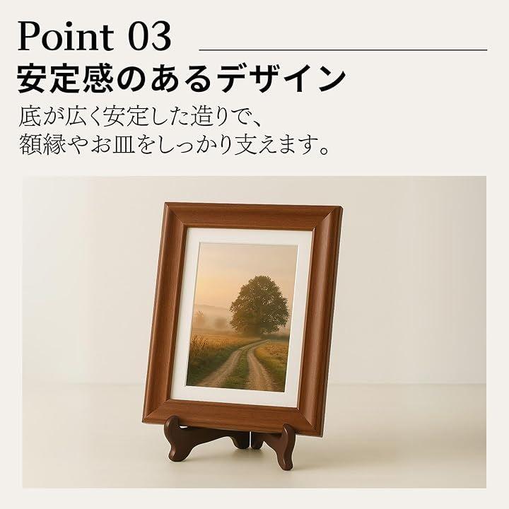 「A4・大判サイズも安定して設置」 高さ約30cmで、A4サイズの額縁やパネル、一般的な賞状額、大きめのお皿もしっかりと支える安定感のある設計です。