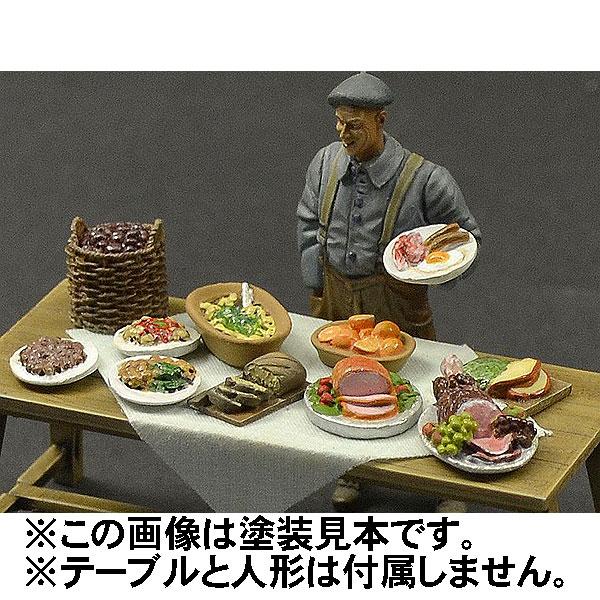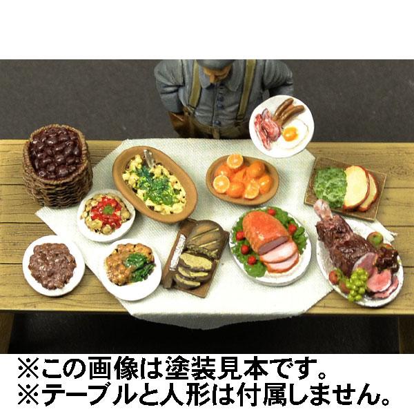 Prepared Foods Set 3器に盛り付けられた料理の模型です。ローストビーフ、ソーセージとベーコン目玉焼きの朝食セット、切り分けたオレンジやパンなど食欲をそそるご馳走セットです。11種入り。器と料理は一体で出来ています。材質:レジン(未塗装)