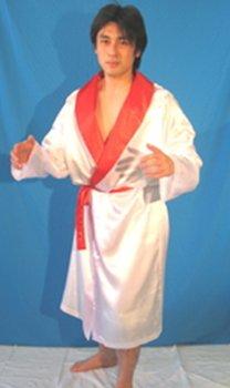 サテン生地の白ガウン。プロレス、ボクシングのタイトルマッチ。格闘技コスチュームとして登場シーンなどに最適。(より)(#lf)(#lf)(#lf)商品購入前に、ストア紹介ページをご確認ください。