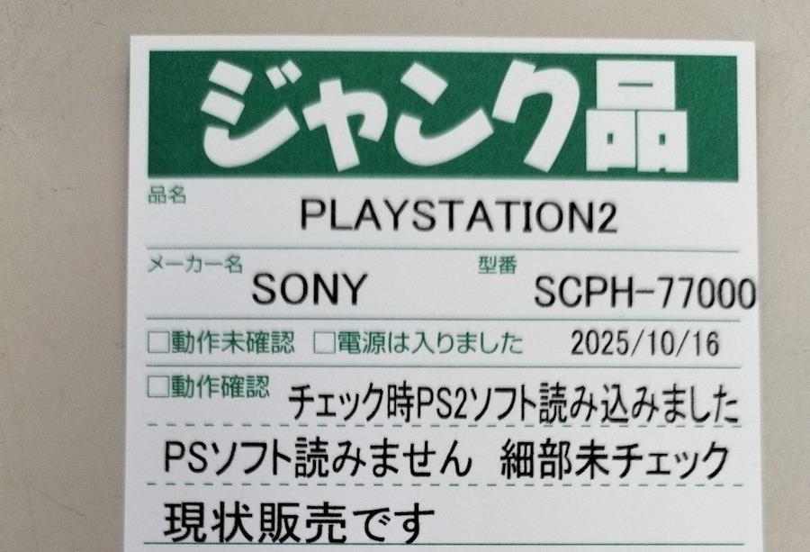 PLAYSTATION2 SCPH-77000 SONY プレイステーション2本体 SONYSCPH-77000PLAYSTATION2■注意事項店舗詳細ページに記載内容をご確認の上、ご注文いただきますようお願いいたします。