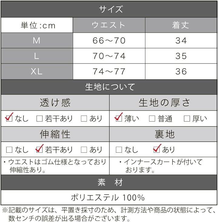 「インナースカート付き」 インナースカートが付いており、透け感をシャットアウトしてくれます。