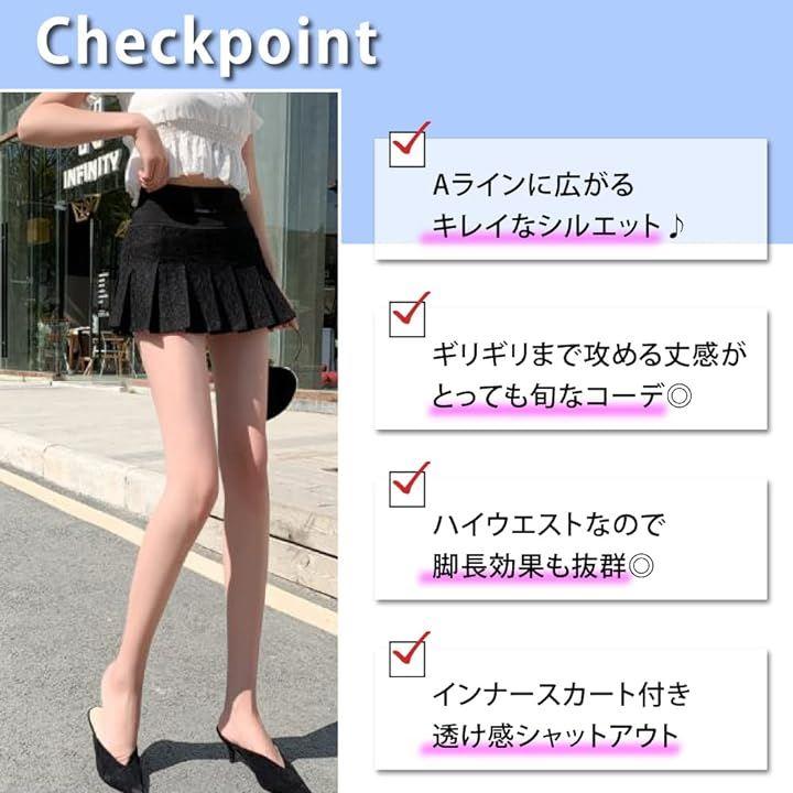 インナーパンツは付いておりませんので、「見た目を重視して、インナーパンツは必要なしかな」、「インナーパンツが付いていると、ウエストの高さを調整しづらいかな」とお感じの方に最適なミニスカです。