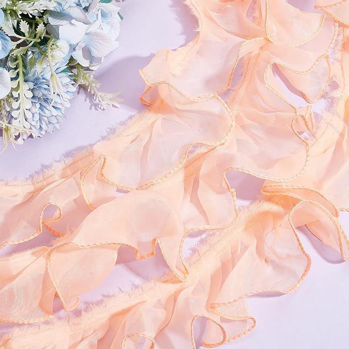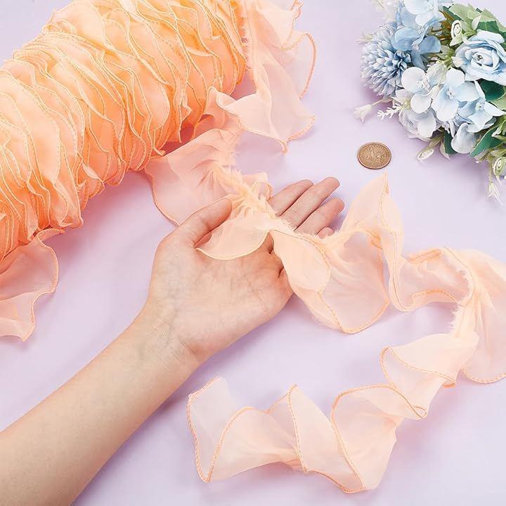 材質:オーガンザ製で、フリルプリーツ形の飾り付きで美しい。