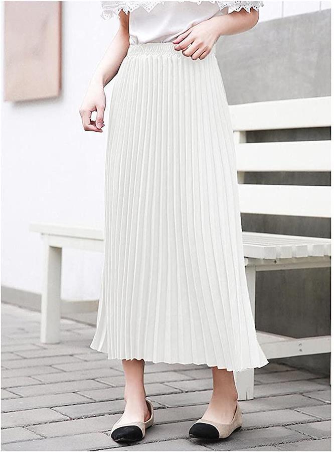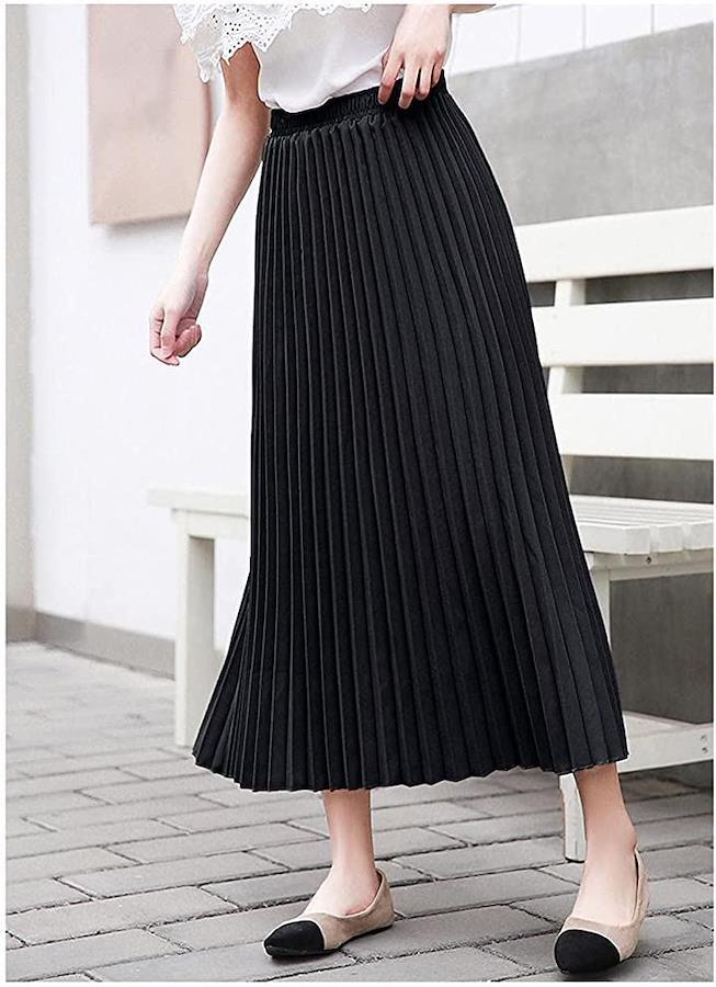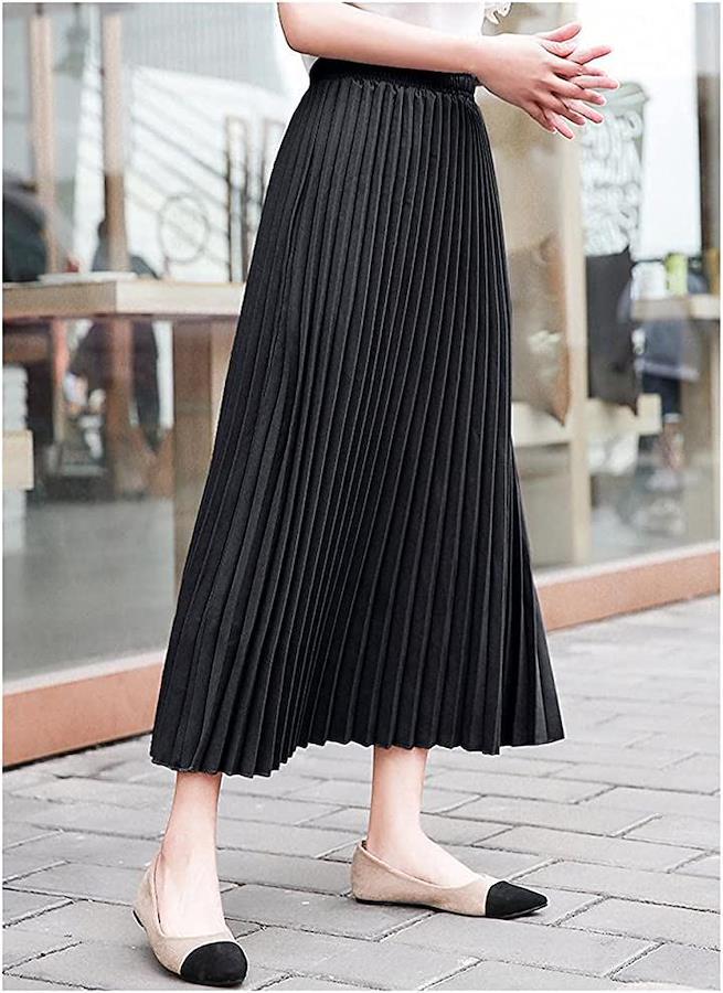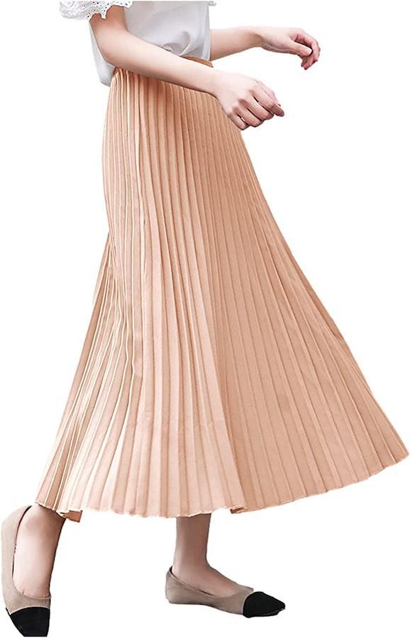プリーツが縦のラインを強調し、スタイルがいい感じに見えちゃう。