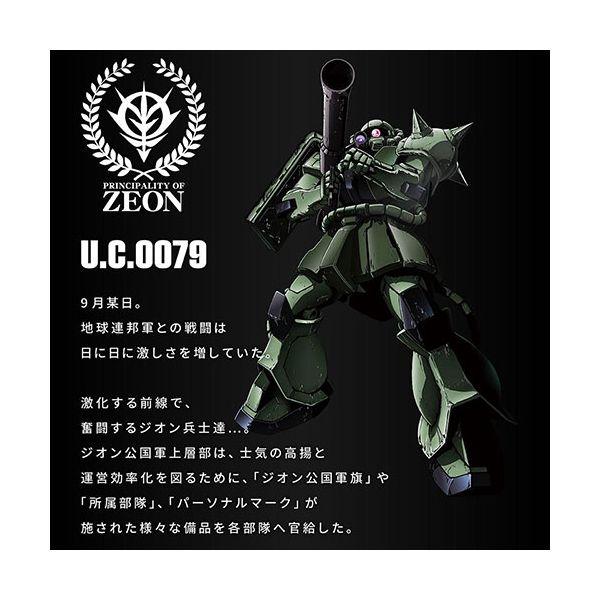■ガンダムの世界観を表現したデザインガルマ・ザビ大佐率いる地球方面軍、その第2地上機動師団の一般兵たちに支給されたモデルをイメージ。ジオン公国エンブレムや所属部隊表記などがあしらわれ、「機動戦士ガンダム」の世界観が表現されています。