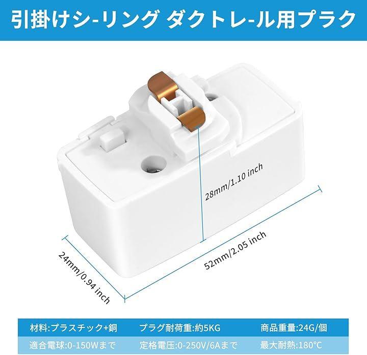 1、 包装:4個入り、色:白い(アイボリーホワイト)、サイズ:高さ2.8cmx幅2.4cmx全長5.2cm、材質:プラスチック+銅、重量:24g/1個、適合負荷: 120V/60Hz専用600W(6A)まで、。