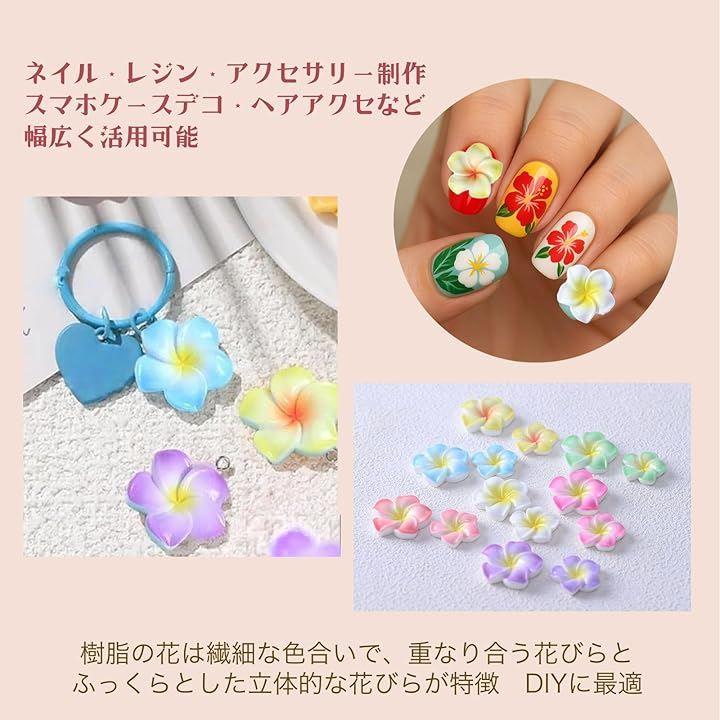 「夏イベントやトロピカルテーマに」プルメリアやハイビスカスを思わせるリアルな花デザインが特徴で、夏祭りや海の日をイメージした作品制作に向いています。
