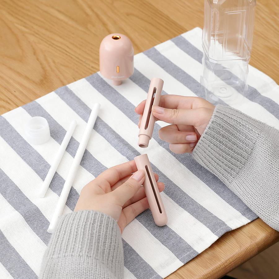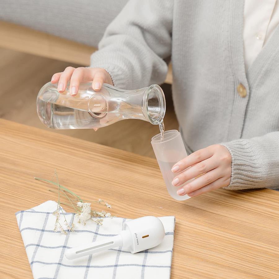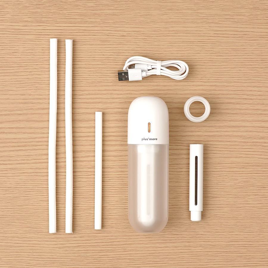 3営業日以内に発送≪新品未開封品≫:持ち運びに便利なポータブルサイズ。お仕事や学校、旅行先など、外出先で潤いが欲しい、なんて時に便利な加湿器。バッグに入れて楽々持ち運べます。コップやペットボトル、水を入れる容器さえあればどんな時でも加湿器に大変身。専用タンクもあるので、容器がない時も加湿器としてご使用いただけます。【セット内容】本体(吸引軸キャップ・吸引軸ショート付、リチウムイオンポリマー電池内蔵)、タンク、吸引軸ロング用吸引軸キャップ、ボトルキャップコネクター、USBコード、交換用吸引軸ショート、交換用吸引軸ロング×2、取扱説明書(保証書付)【材質】本体:ABS・シリコン、タンク・PC、ボトルキャップコネクター:PP、吸引軸キャップ:ABS、交換用吸引軸:PETコットン【サイズ】48×48×158mm【重量】132g【充電電池】リチウムイオンポリマー電池 3.7V、800mAh 【電源】DC5V 0.7A 【消費電力(約)】3.5W【加湿能力(約)】30ml/h(±10ml)【電源コード(約)】USBコード:750㎜【タンク容量(約)】100ml【推奨面積(約)】パーソナル【満充電時の合計使用可能時間(約)】3