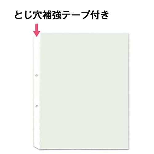 ・大事な書類もしっかり保存・両面印刷物などの収納に最適な中紙なしタイプ・2穴ファイルに対応(ファイル・バインダーのサイズによっては、ポケットがはみ出す場合がありますのでご確認の上、ご購入ください。)・とじ穴部は白い補強テープ入り・おまとめ買い向け100枚入