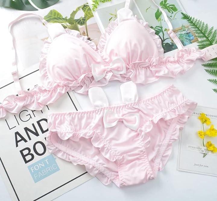 大きめサイズの女性にも対応の、キュートなブラ&ショーツセット。