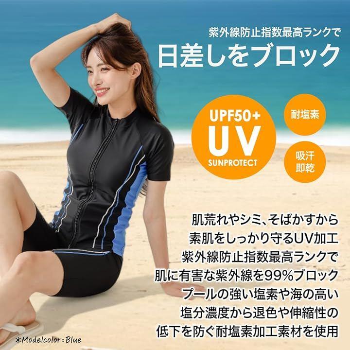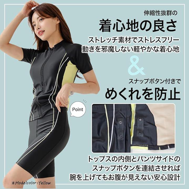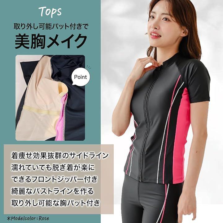 半袖 フィットネス水着 セパレートタイプ セット内容:セパレート水着上下 パット付 吸汗 速乾 伸縮性に優れた生地使用 塩素対応で伸縮性に優れ、前面ファスナーで楽に着脱ができるセパレート水着です。