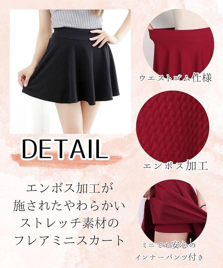 エンボス加工が施されたやわらかいストレッチ素材のフレアミニスカート歩くたびにふわりと広がるAラインシルエットで女子力アップ間違いなし。ウエストはゴムなので楽チンな履き心地。
