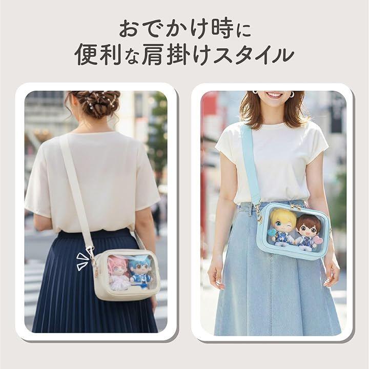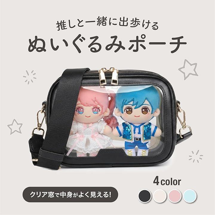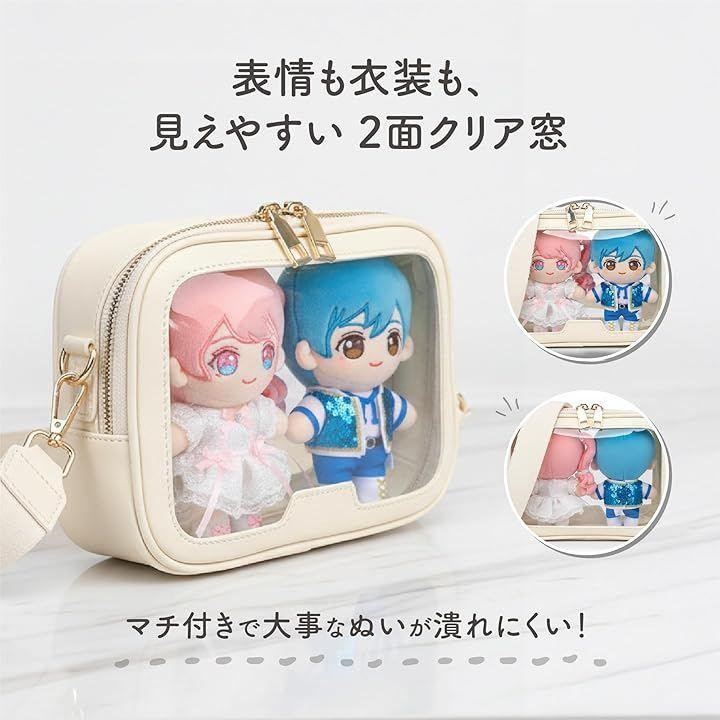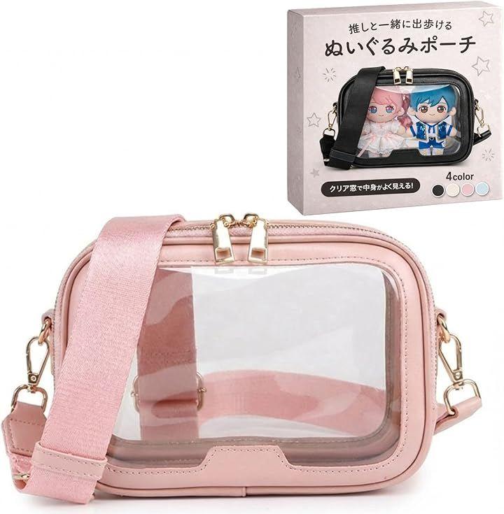 「デザイン・形状」 透明窓付きのシンプルなデザインで、ぬいぐるみを入れた状態のまま持ち歩けるポーチです。