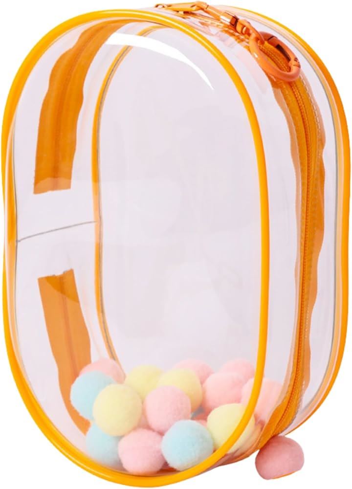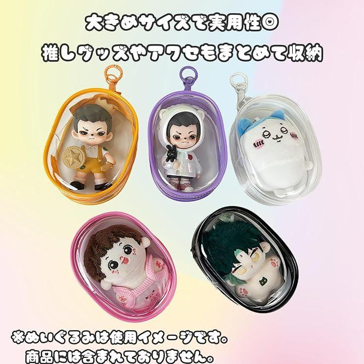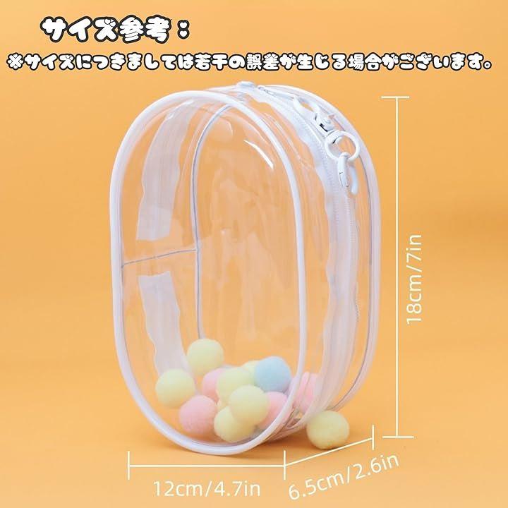 「商品仕様」:このぬいぐるみポーチは、高品質PVC素材を使用し、耐久性と透明度を兼ね備えています。