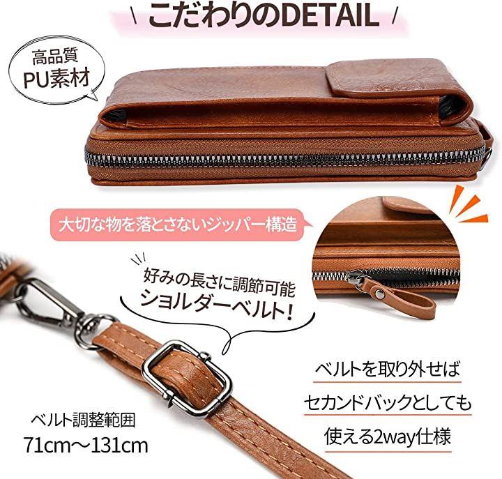 「細部のこだわり」 軽量、縦型、高品質のPU素材を使用しているので、丈夫で長持ち。ボタン式スマホ収納だから大事なスマホを落とさない。ショルダーベルトは71cm~131cmの範囲で調整可能。体に合わせて長さを調節できます。
