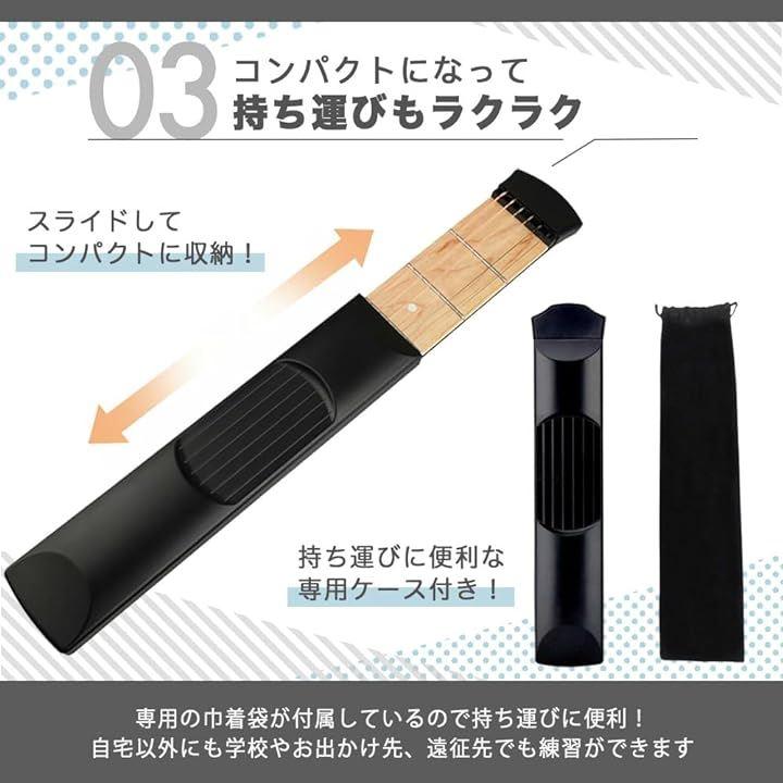自宅だけでなく、学校やお出かけ先、遠征先など様々な場所でギターコード・運指の練習をすることができます。
