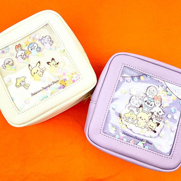 キラキラかわいい★ポケピースのほしぞらシリーズ。シャカシャカ動くスパンコールがとってもキュートなアイボリーのポーチは、マチ付きで使いやすさも◎!!