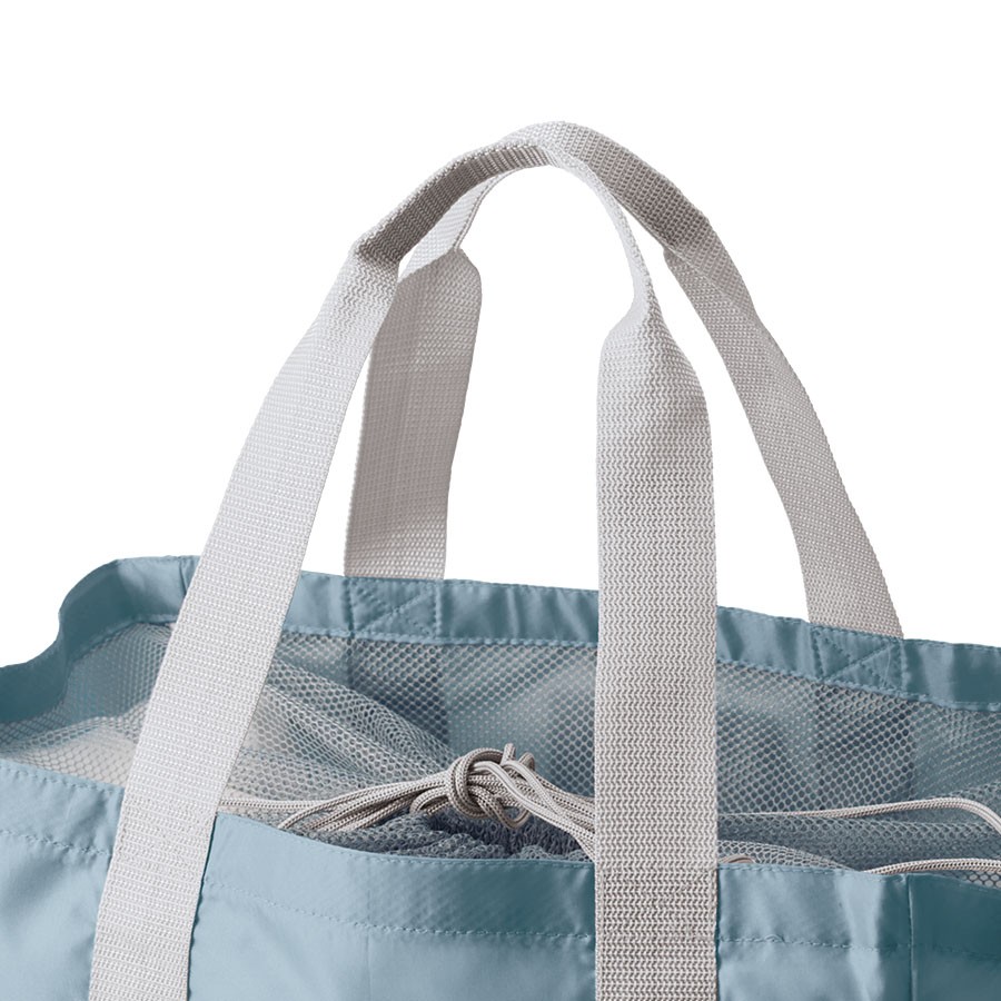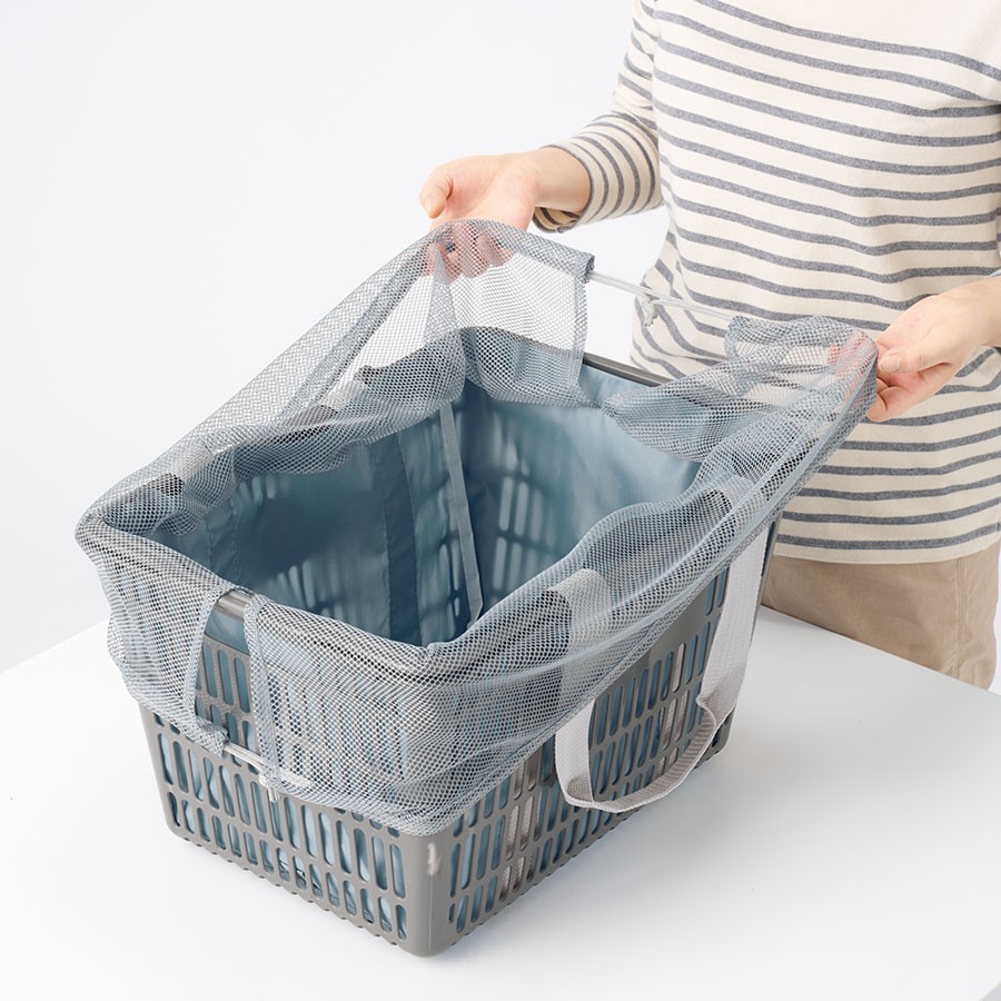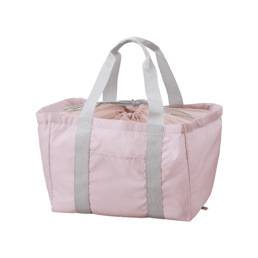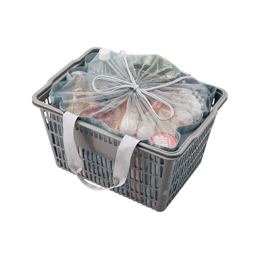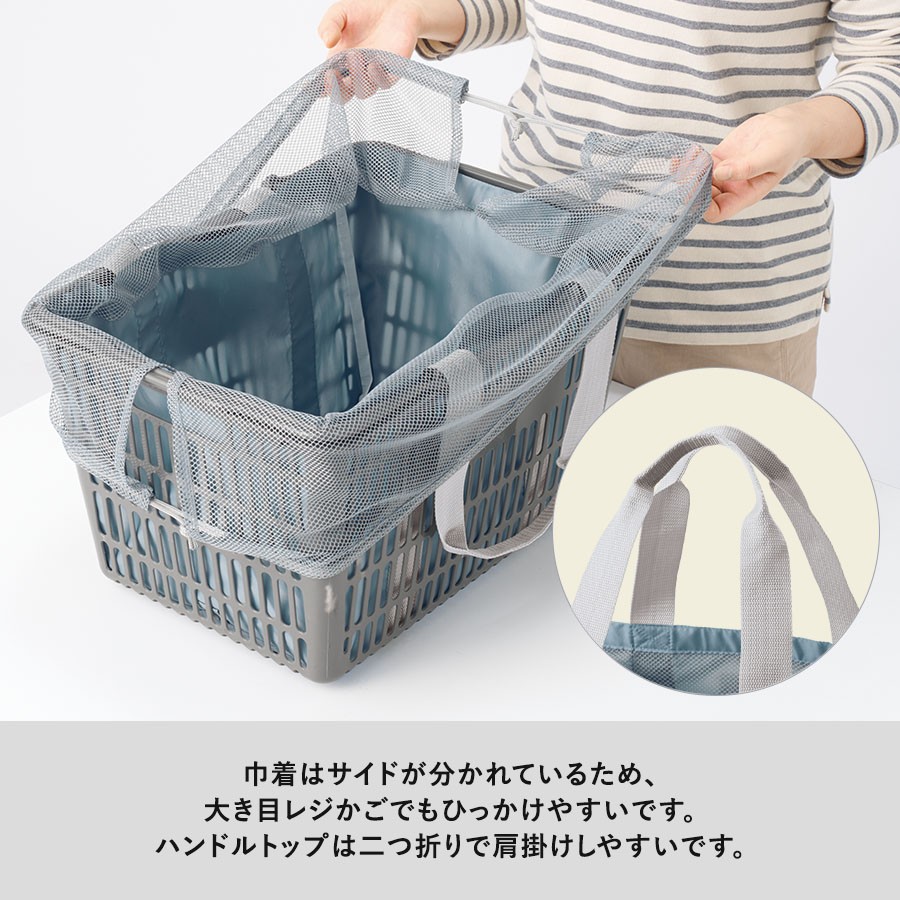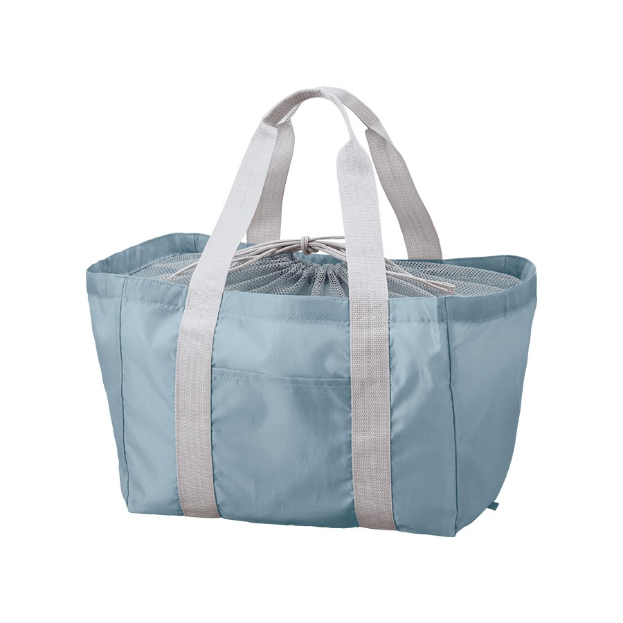 軽くて持ち運びしやすいポケッタブル仕様のレジカゴトートです。大容量ながら、底ホックで小さくまとめることのできるポケッタブル仕様で持ち歩きにも便利です。巾着のサイド部分は切れ目が入っており、大きめのレジカゴにも引っ掛けやすいので様々なサイズのレジカゴに対応できます。口元巾着はメッシュになっているので、中身を確認しやすいのもポイントです。またフロントポケット付きなので、小物を入れて荷物と分けておくことができます。フルカラー印刷にも対応しているおり、お店の購入特典や高級ノベルティはもちろん物販品としてもおすすめです。