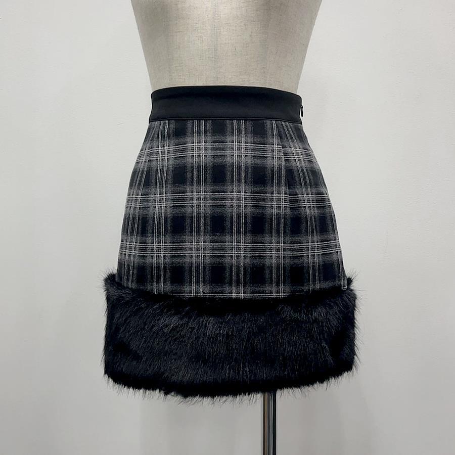シーズンムード高まる台形ミニスカート【デザイン】チェック柄と贅沢なファーが特別感ある1着。すっきりした台形シルエットがスタイルアップを叶えてくれます。シンプルなトップスと合わせても一気にお洒落なスタイリングに導いてくれる、今シーズン大活躍すること間違いなしの主役級ボトムです。【素材】肌ざわりの良い柔らかい素材です。《透け感》なし 《生地の厚さ》普通 《裏地》なし 《伸縮性》なし《生産国》中国
