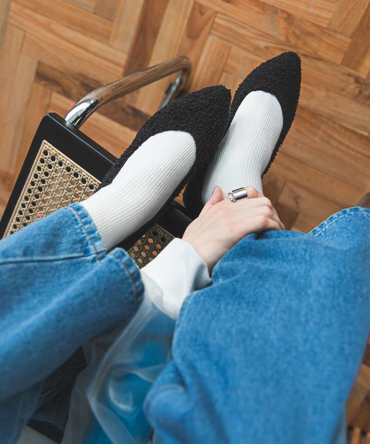 【Design】ポインテッドトゥの大人カッコイイ雰囲気にプードルファーで甘いエッセンスをプラスして。大人可愛い足元を演出してくれます。