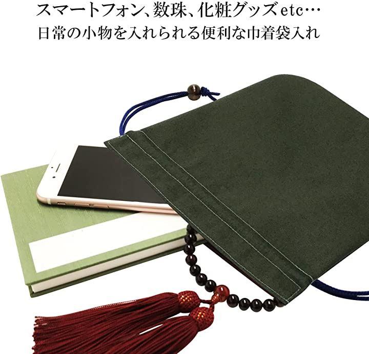 スマートフォン、マスク、化粧グッズ、数珠などアイデア次第でいろいろなものを便利に収納できる、小物用袋入れです。
