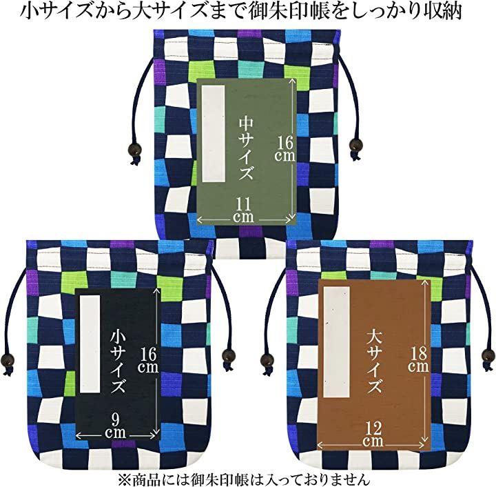 ・「ゆとりのある巾着で御朱印帳を収納」小サイズから大サイズまで、ご朱印帳が入る収容力のある巾着袋です。