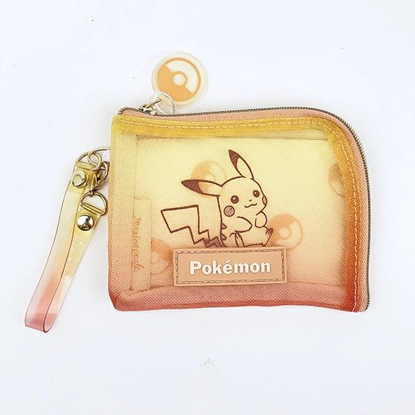 ピカチュウのパスケースです♪グラデーションカラーのメッシュ生地と裏地はモンスターボール柄♪リールが付いているので、カバンに付けたままサッと定期を取り出せます☆彡