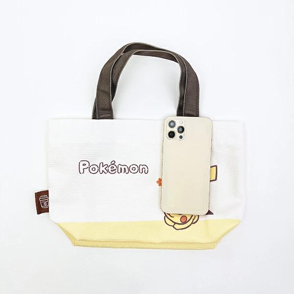 ポケットモンスター(ピカチュウ)のおでかけに便利なミニトートバッグです。表裏にピカチュウがデザインされていてポケモン好きにはたまりません☆ランチ用品を入れるのにちょうどいいサイズ感が◎取っ手の色合いが違うのがおしゃれです♪
