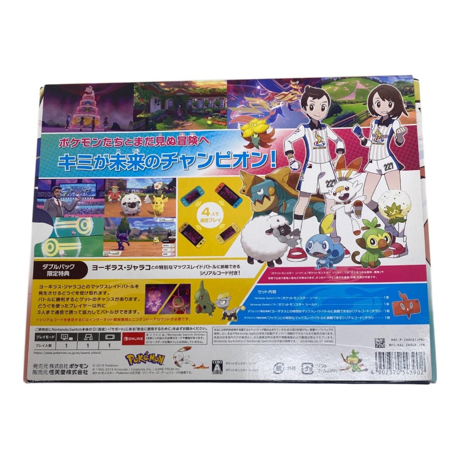 こちらの商品は使用感の少ない美品ですが、店頭にて展示販売を行っている為、記載に無い細かなキズ、ヨゴレなどが見受けられる場合がございます。■商品説明メーカー:任天堂商品名:ポケットモンスター ソード・シールド ダブルパック備考:ソード開封済み・シールド未開封箱付■付属品箱付■その他必ず、商品注文される前に店舗情報に記載している注意事項をご確認ください。
