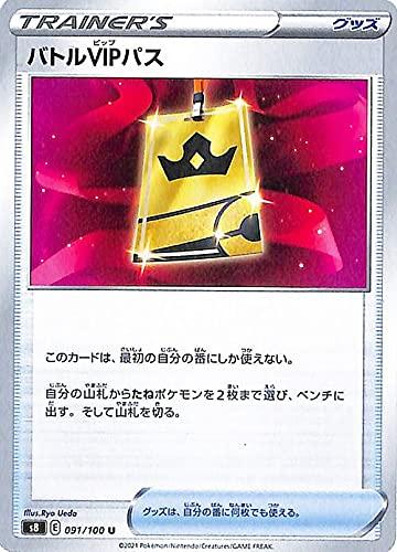 通常1-5営業日で発送:★収録:ポケモンカードゲーム ソード&シールド 「フュージョンアーツ」■カード名:バトルVIPパス■タイプ:グッズ■分類:トレーディングカード●このカードは、最初の自分の番にしか使えない。 自分の山札からたねポケモンを2枚まで選び、ベンチに出す。そして山札を切る。 グッズは、自分の番に何枚でも使える。■レギュレーション:E(091/100)※画像は初回版のカードですが、初回版と再販のものは全て同じ在庫として管理しており、お選びすることができませんので予めご了承くださいませ。