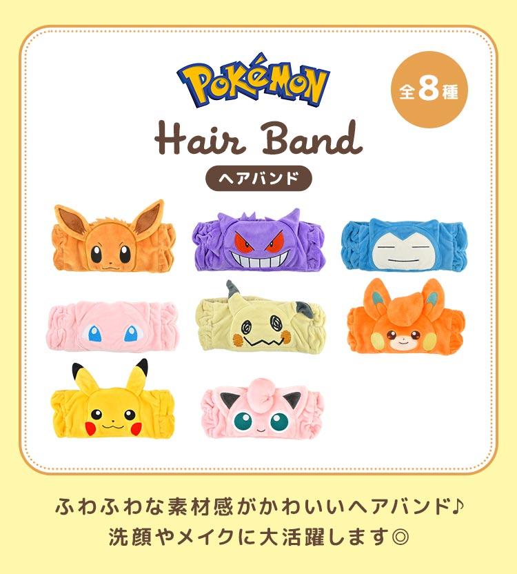 【ヘアバンド】ポケモン好きにはたまらない!ポケモンのお顔が大きくデザインされたインパクト抜群のヘアバンドです♪洗顔時やメイク中にご使用いただけます。しっかりした作りで伸縮性に優れているので、子供から大人まで頭にフィットしやすいです。