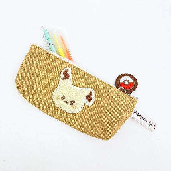 正面にミミッキュのサガラ織お顔がついているのがカワイイポーチです。小物を入れたりペンケースとしても◎