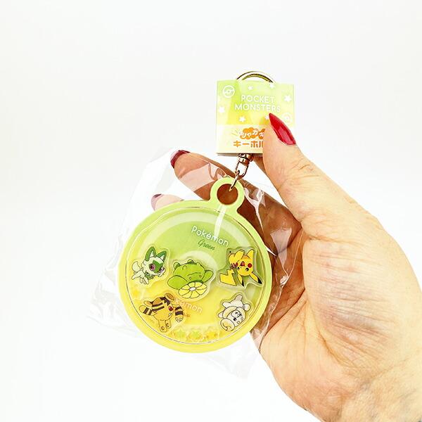 中のポケモンがシャカシャカ動いて楽しいキーホルダー。グリーン&イエローのグラデーションカラーもかわいいですね♪