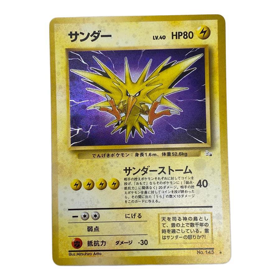 ■商品状態程度B:通常程度の使用感があるお品物こちらの商品は小キズやヨゴレ、若干の使用感などが見受けられます。また店頭にて展示販売を行っている為、記載に無いキズ、ヨゴレなどが見受けられる場合がございます。■商品説明カード名 :サンダー Lv.40型番 :No.145封入パック:拡張パック『化石の秘密』備考 :旧裏面、白カケ有スタッフコメント:こちらのアイテムは、拡張パック『化石の秘密』で登場したポケモンカードとなっており、コイントスの結果次第で相手の控えポケモンに対してもダメージを与えることが出来るワザを有しています。当社で販売しているカードに関してはお客様から買取させていただいております中古のお品物となります。商品の性質上、写真に写りにくいキズやヨゴレ、折れや反り、白欠けなどの瑕疵がある場合もございます。コレクション向けではなく、あくまでプレイ向けでの販売となるため、あらかじめご了承くださいませ。当社で販売しているカードのBOX商品にて『シュリンク付・未開封・未使用』と表記のあるお品物に関しては、外装にヤブレやキズ、ヨゴレ、またラベルシール貼り付けなどのダメージがある場合もございます。こちらのシュリンクの瑕疵に関しては返品の対象とはなりませんため、あらかじめご了承くださいませ。なお、BOX商品は販売後のすり替えを防止するための対策を実施させていただいております。また、各個人の主観により記載情報よりもキズやヨゴレなどの瑕疵が多く感じられる場合もございます。返品をご希望であっても、店舗での評価基準内であると判断した場合、ご返金やご返品をお断りさせていただいております。あわせてご理解・ご確認の程、よろしくお願い致します。■付属品本体のみ■その他必ず、商品注文される前に店舗情報に記載している注意事項をご確認ください。