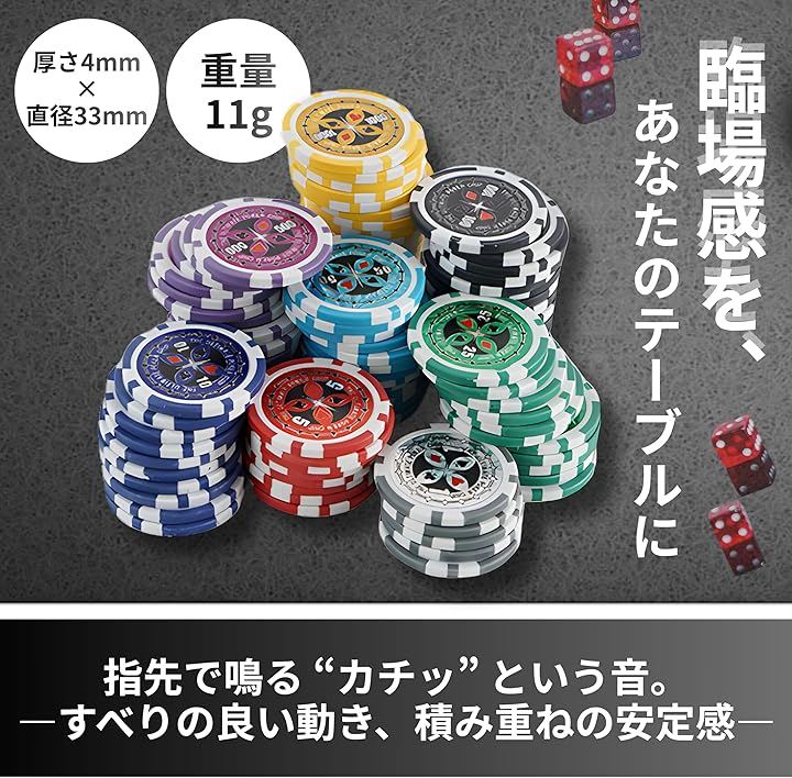 「開けてすぐ勝負がはじまる」 チップ300枚にトランプとサイコロをセット。