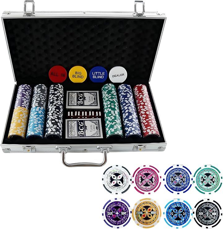 Poker Chips Casino Chips 8 Types 300 Chips Aluminum Case Dice Playing Cards Set Home Use Authentic Poker Play Set Portable