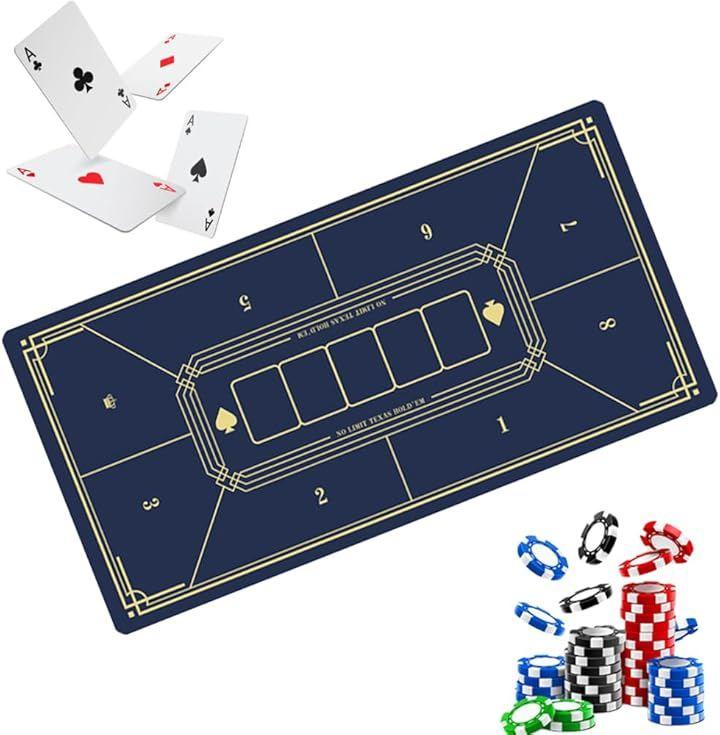 「ポーカー・麻雀・各種ゲームに対応するマット」サイズは40x80cmで、ポーカー・麻雀・UNO・カジノ風ゲームなど多用途に対応。