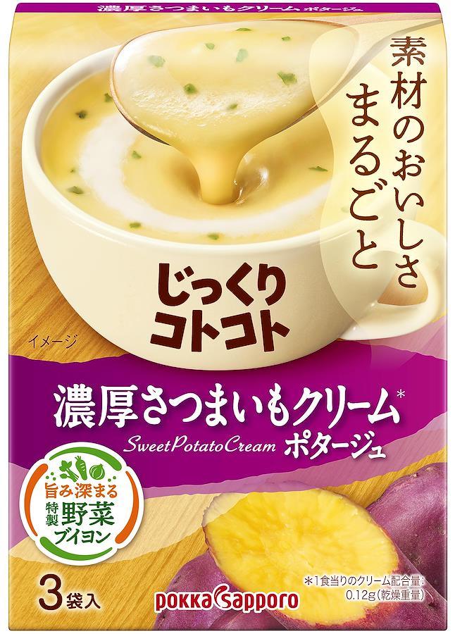 5箱入栄養成分:エネルギー88Kcal(1食分21.2gあたり)たんぱく質0.7g 脂質1.8g 炭水化物17.3g 食塩相当量0.6gアレルギー情報:?乳、大豆、 小麦さつまいもがたっぷりとけこんだ、濃厚クリーミーなさつまいもクリームポタージ ュです。コクのある甘みとほくほくしたくちあたりで、素材のおいしさをまるごと 味わえます。【重要】メーカーによる商品リニューアルに伴いパッケージ(内容量も含む)変更が行われた場合、新パッケージでお届け致します事ご了承願います。