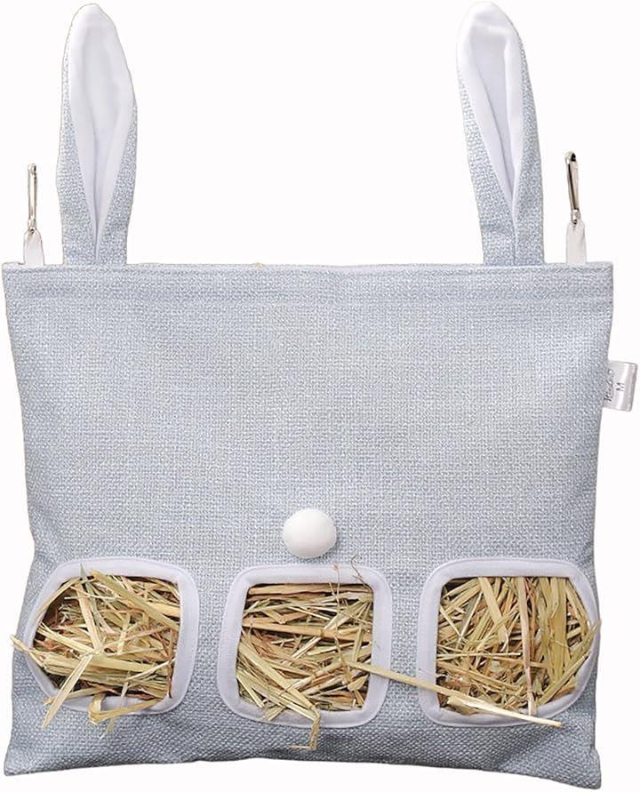 「耐久性のある素材」綿と麻を使用した丈夫な生地は、適度な摩擦力で牧草をしっかりサポートし、過剰なこぼれを防ぎます。