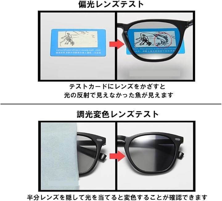 偏光x調光ハイブリッドレンズ:路面や水面のギラつきを抑える偏光機能と、太陽光の強さに応じてレンズ濃度が自動変化する調光機能を一枚に凝縮。